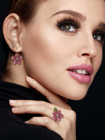 Inspired by the District's, stunning cherry blossoms, this hanging drop earring style was brought back from our original collection in 2002 in a beautiful contrasting cherry blossom color as a part of the Cherry Blossom Collection.  It is handcrafted with crystals right in Maryland.