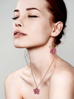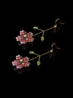 Inspired by the nation's, stunning cherry blossoms, this hanging earring style was brought back from our original collection in 2002 in a beautiful cherry blossom pink as a part of the Cherry Blossom Collection. It is handcrafted with crystals along with two peridot, semi-precious stones right here in Maryland.