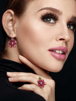Inspired by the District's, stunning cherry blossoms, this hanging drop earring style was brought back from our original collection in 2002 in a beautiful contrasting pink blossom color option with a bit of boldness as a part of the Cherry Blossom Collection.  It is handcrafted with crystals right in Maryland.