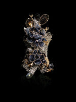 - Swarovski Crystal blooms and leaves in Rose, Raspberry, and Gold