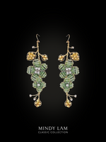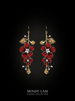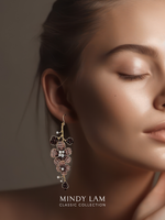 Indulge in timeless allure with our Classic Double Bloom Hanging Earrings. Made in a mesmerizing Blush Rose, Crimson Red, Mint and Obsidian Black. Each pair adorned with delicate gold leaves. These earrings seamlessly transition from casual elegance to evening glamour. Meticulously handcrafted with precision, they feature a shimmering array of crystals and vintage rhinestones.