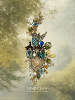 The jewelry artist loves collecting vintage jewelry herself, often gravitating towards elegant and sometimes even quirky pieces; they are all beautiful to her. Lam is able to transform these forgotten vintage pieces and revive them with new life, filled with sparkles and enchantment, after they go through her eyes, heart, and hands. The Ethereal Collection is a limited series that includes Lam’s private collection of the rarest and most ornate vintage jewelry. She is releasing some of her favorite pieces into the world to make room for new loves and inspiration. From one treasure box to another…