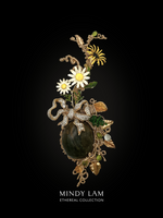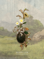 The jewelry artist loves collecting vintage jewelry herself, often gravitating towards elegant and sometimes even quirky pieces; they are all beautiful to her. Lam is able to transform these forgotten vintage pieces and revive them with new life, filled with sparkles and enchantment, after they go through her eyes, heart, and hands. The Ethereal Collection is a limited series that includes Lam’s private collection of the rarest and most ornate vintage jewelry. She is releasing some of her favorite pieces into the world to make room for new loves and inspiration. From one treasure box to another…