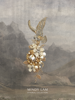 The eagle is rhinestone encrusted from wing to wing. The "floating palace" is composed with Mindy Lam Classic pearl flowers, a stunning Miriam Haskell vintage and adorned with pearls.