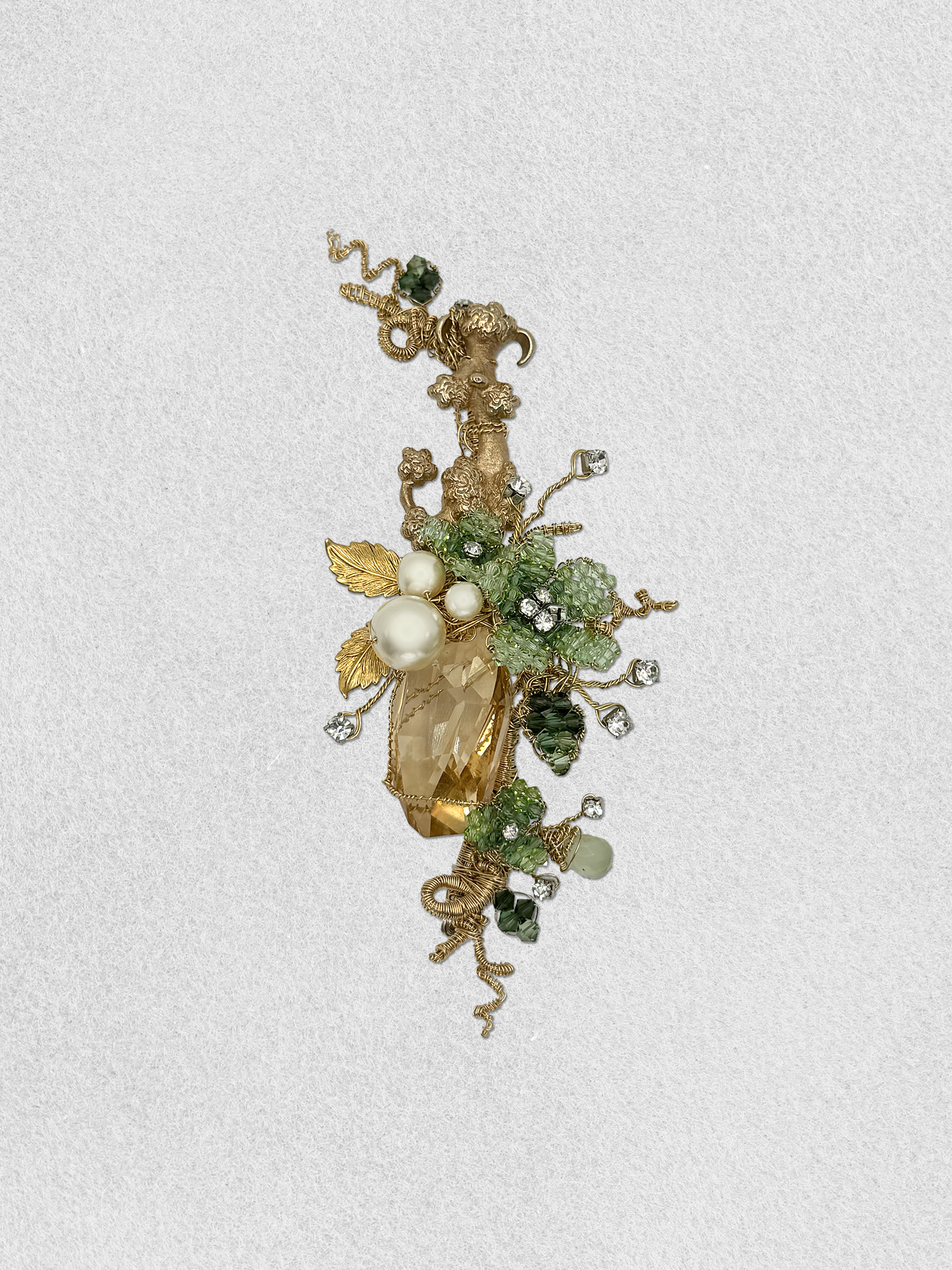 The jewelry artist loves collecting vintage jewelry herself, often gravitating towards elegant and sometimes even quirky pieces; they are all beautiful to her. Lam is able to transform these forgotten vintage pieces and revive them with new life, filled with sparkles and enchantment, after they go through her eyes, heart, and hands. The Ethereal Collection is a limited series that includes Lam’s private collection of the rarest and most ornate vintage jewelry. She is releasing some of her favorite pieces into the world to make room for new loves and inspiration. From one treasure box to another…