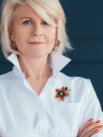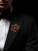 The earring and lapel pin set are handcrafted and made with Swarovski crystals and vintage rhinestones.