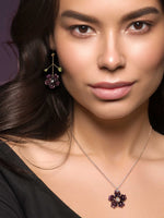 The amethyst floral twist w/peridot earring is a rich amethyst color that works beautifully with navy blues, tans, and apple greens.