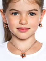 The earrings are handcrafted with Swarovski crystals and vintage rhinestones. The earring is slightly smaller and appropriate for a child.