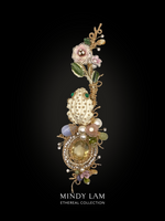 The jewelry artist loves collecting vintage jewelry herself, often gravitating towards elegant and sometimes even quirky pieces; they are all beautiful to her. Lam is able to transform these forgotten vintage pieces and revive them with new life, filled with sparkles and enchantment, after they go through her eyes, heart, and hands. The Ethereal Collection is a limited series that includes Lam’s private collection of the rarest and most ornate vintage jewelry. She is releasing some of her favorite pieces into the world to make room for new loves and inspiration. From one treasure box to another…