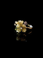 This double bloom ring in sunray is just what we need-- to take a glance at our hands and be reminded of the feeling of a bright and sunny day. This ring style was brought back from our best selling original collection in 2002 works beautifully as an accent with stacked ring styles and with the sunray floral twist earring.